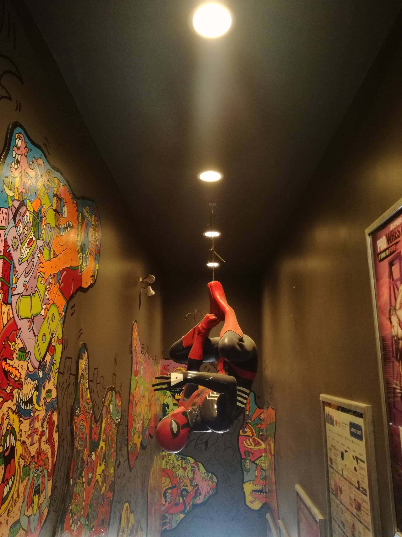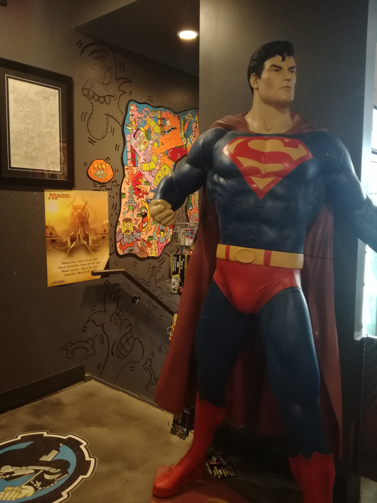 また、店内にはスパイダーマンだけじゃなく、ナイスバディなスーパーマンもいるんです。記念撮影必至ですね。こちらはお触り可能です。