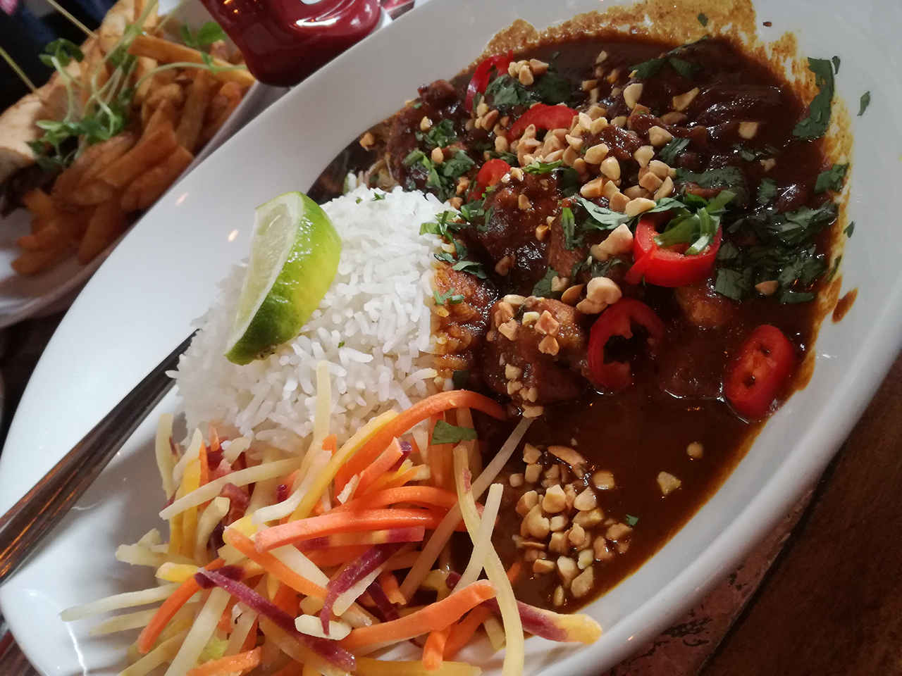 立派なビール醸造所があるパブ。メニューはおつまみやバーガー類がメインですが、お米の気分だったので唯一のお米料理、マレーシアチキンカリー($16)をいただきました。私、辛いものは好きなのですが嗜好に反して身体が刺激物に弱いので、食べ終わる頃には一人風呂上がり状態に。。