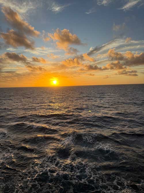 今日は一日中、船はシンガポールへ向かって走り続けます。夜10時位にシンガポール海峡に入って、朝9時に着岸予定です。今日は午後3時から、新藤学先生の筋肉燃焼コースに出る予定です。さあ、今日はどんな出会いがあるでしょうか。楽しみに1日を始めたいと思います。