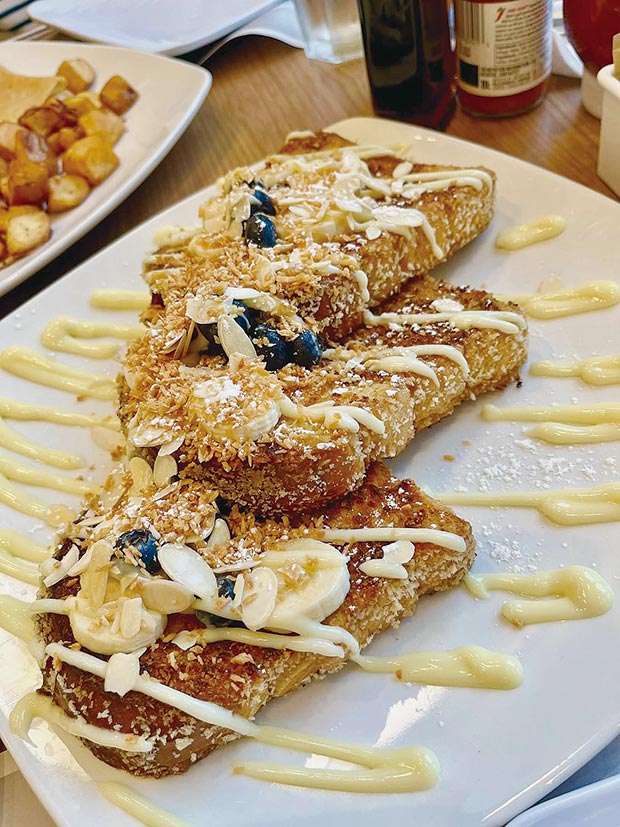 基本のベネディクト、オムレツ、バーガー/サンドからワッフル、子供メニューまで豊富。カクテルも有り。女子会ランチなども良いでしょう。写真はココナッツクランチフレンチトーストです。これが甘すぎずカリっとした触感で美味しい‼値段の割にクオリティも良く量もまずまずと使い勝手も良好。また行きたくなってしまうお店です。