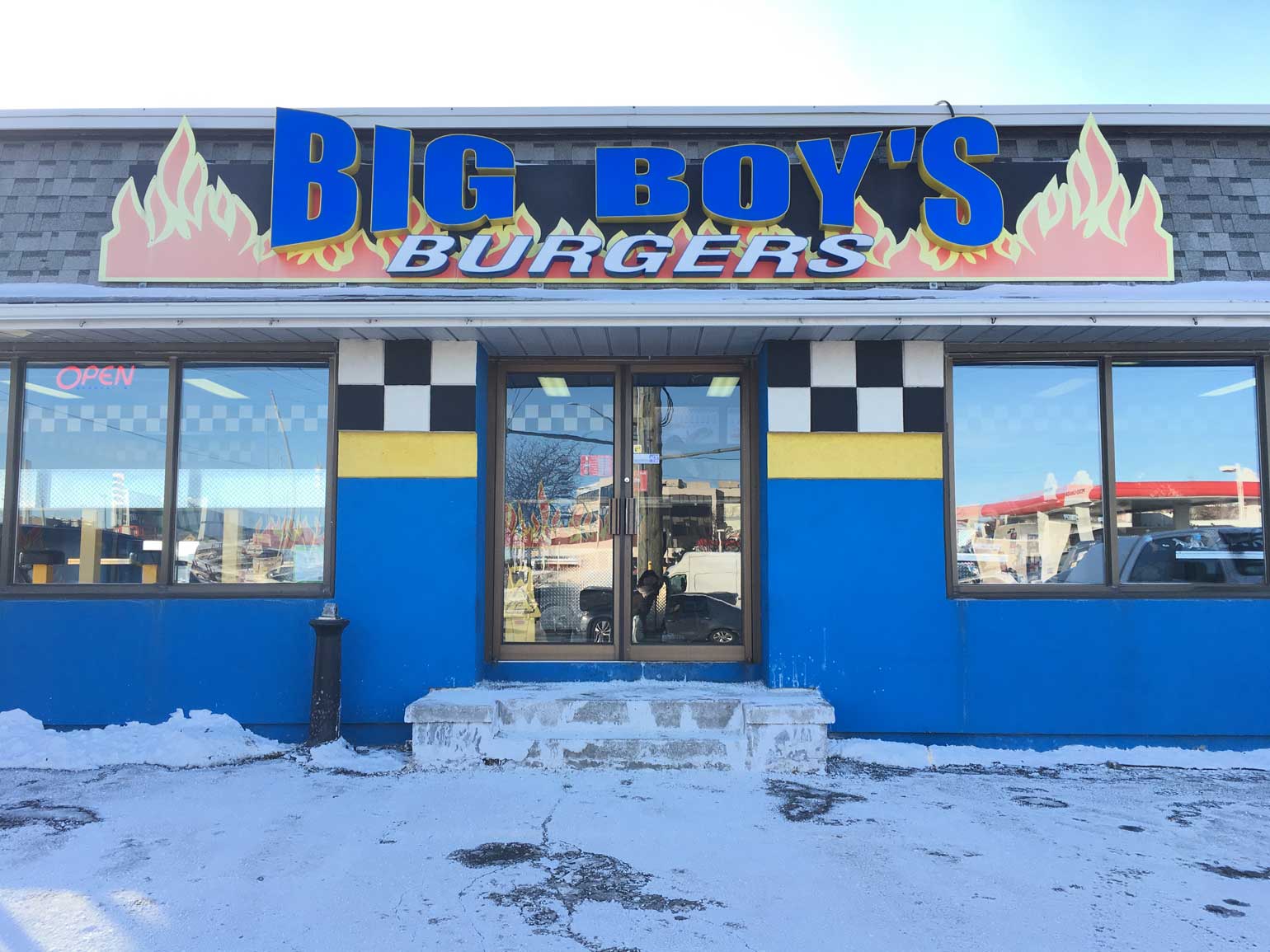 そしてオシャワ駅から車で3分ほど走ると現れる超派手な建物!なんとハンバーガー屋さんなのです。その名もBIG BOY’S !