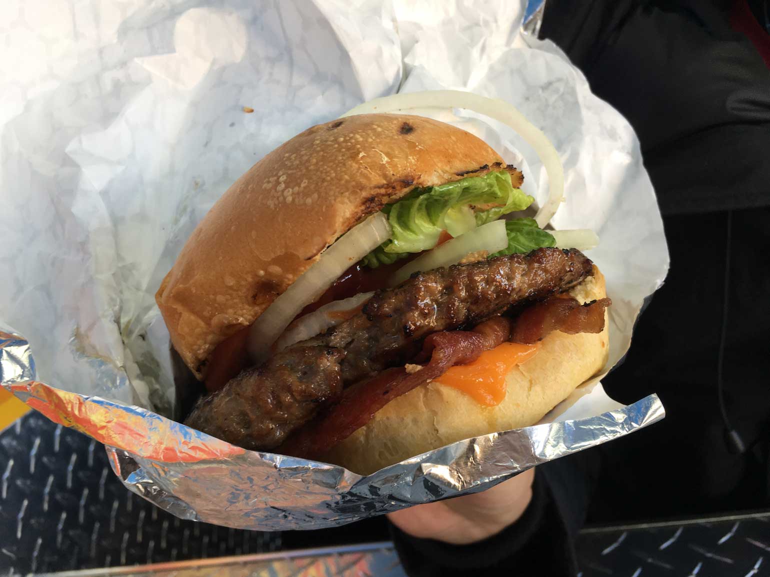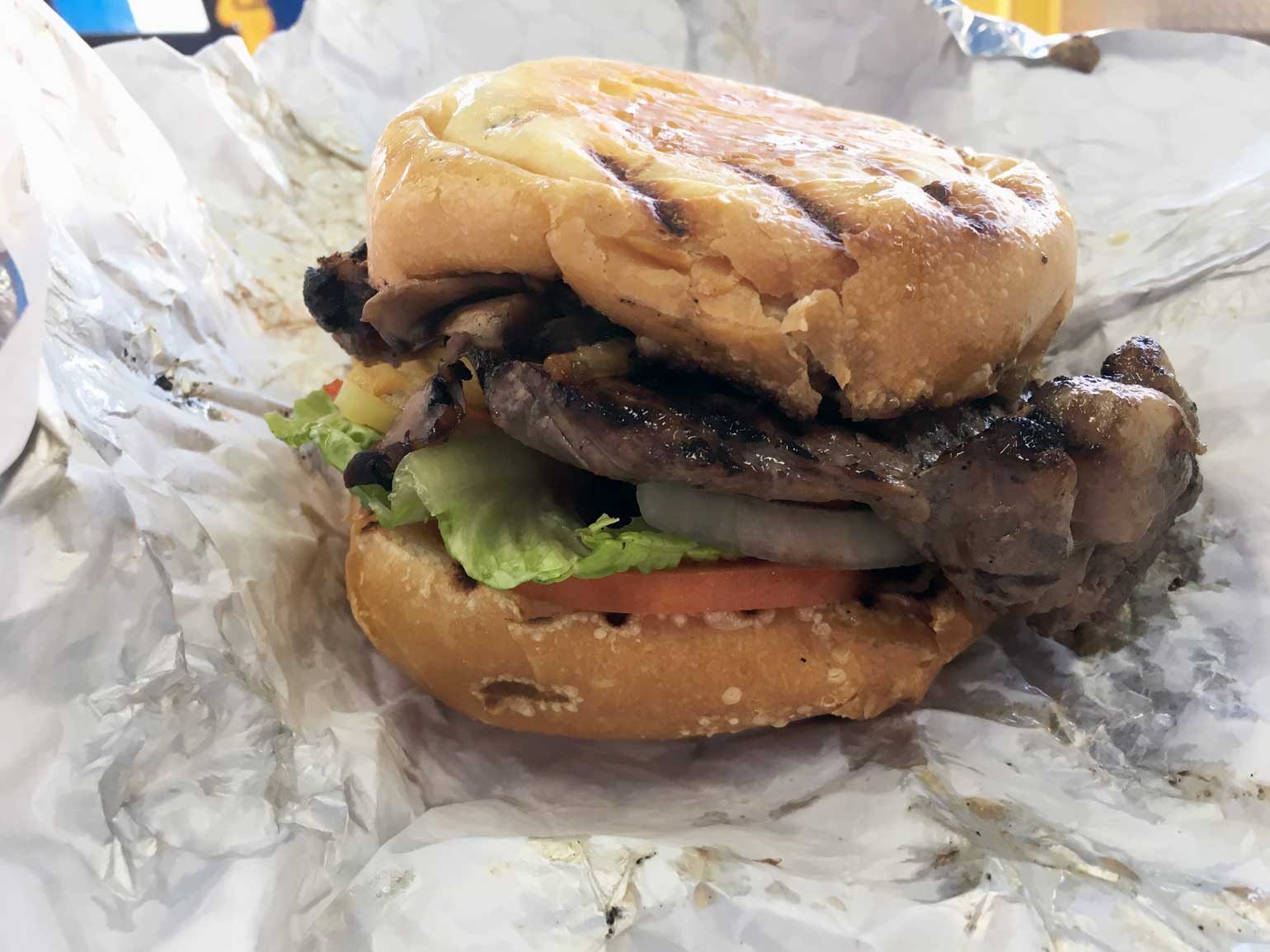 なんと、ステーキもバーガーにできちゃうんです。焼いたステーキがスライスされてステーキソースと一緒に挟まれている!これは人生で食べたハンバーガーの中で一番美味しかったです。レストランでしか食べられないステーキと、ストリートフードのバーガーが感動のコラボレーションで拍手でした。