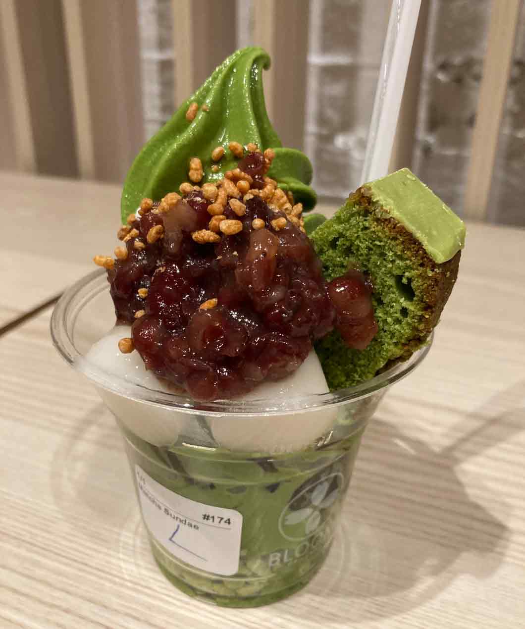 抹茶のソフトクリームはとても濃厚で、白玉、あんこものっており、抹茶を食べたいという気持ちも、日本の食べ物を恋しく思う気持ちもしっかり満たすことができました。