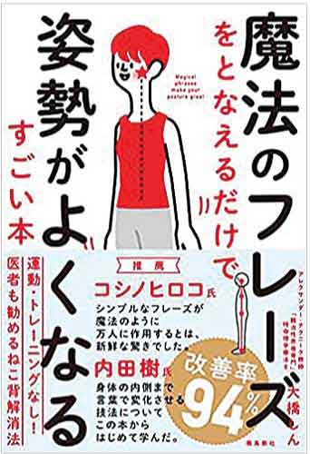 スマホを使っていると猫背になりがちです。大橋しん著『魔法のフレーズをとなえるだけで姿勢がよくなるすごい本』(飛鳥新社)を読んできれいな姿勢を取り戻しましょう。姿勢が悪くなるのは、無意識のうちに体が堅くなっているからだそうです。魔法の10のフレーズを使って強張った体を「ふんわり」ほぐせば、姿勢が「しっかり」してきます。特別な運動やトレーニングをしなくても良いので、直ぐにでも始められそう!