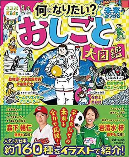 『るるぶKids 何になりたい?未来をみつける おしごと大図鑑』(ジェイティビィパブリッシング)は、子どもに人気のある仕事、約160種をイラストとインタビューで紹介しています。定番の職種から、YouTuber等比較的新しいものまでを網羅しています。気になる年収や勤務時間の目安も載っています。中にはその職に従事する方の1日に密着したものもあり、何をしているのかイメージがつかみやすいようになっています。お仕事紹介と言えば、村上龍著の『13歳のハローワーク』も有名です。2010年に改訂・ページ増量の『新 13歳のハローワーク』も出版されており、気になる方は是非チェックしてみてください。