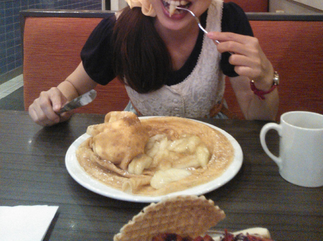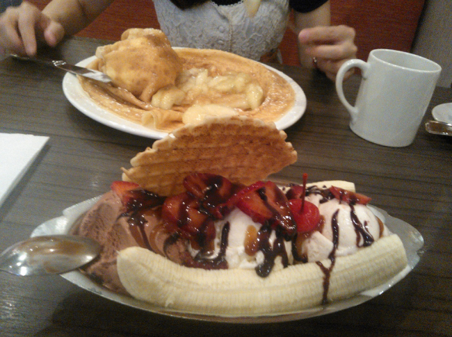 私がオーダーしたのは、Banana Split、友人はアイスクリームが丸ごと包まれたアップルクレープを注文。