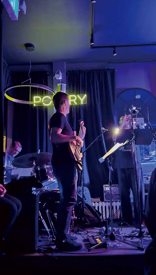扉を開けると、案の定の大混雑。赤と青のネオンで“Jazz Poetry Cafe”と描かれた古いフォントの看板が、薄暗い店内にぼんやりと浮かび上がっている。人々の熱気とざわめき、そしてリズムが渦を巻いていた。早めに到着していた友人は、どうにか席を確保しようと奮闘してくれていたらしい。店の端っこの椅子にちょこんと腰掛け、雑踏に肩を窮屈そうに押されながら、私を見つけて安心したように小さく手を振っている。ありがとう友人。でも正直、立ち見でもよかったんだ。この密集感と肌で感じる雰囲気が好きだから。