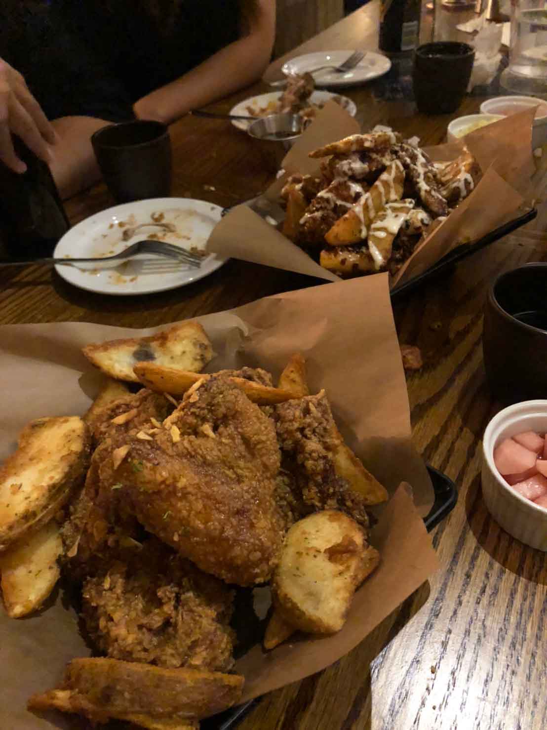 どのチキンも皮付きポテトが一緒についてくるのがまたありがたいですね。さらに、アパタイザーとして、コールスロー、かぶの漬物も無料でついてきます。アルコールももちろんあるのでチキンを食べながらワイワイ楽しみながらのむのもありですね。サイズはHalfとFullがあるので少人数でも大人数でも色んな美味しいチキンをシェアすることができます。