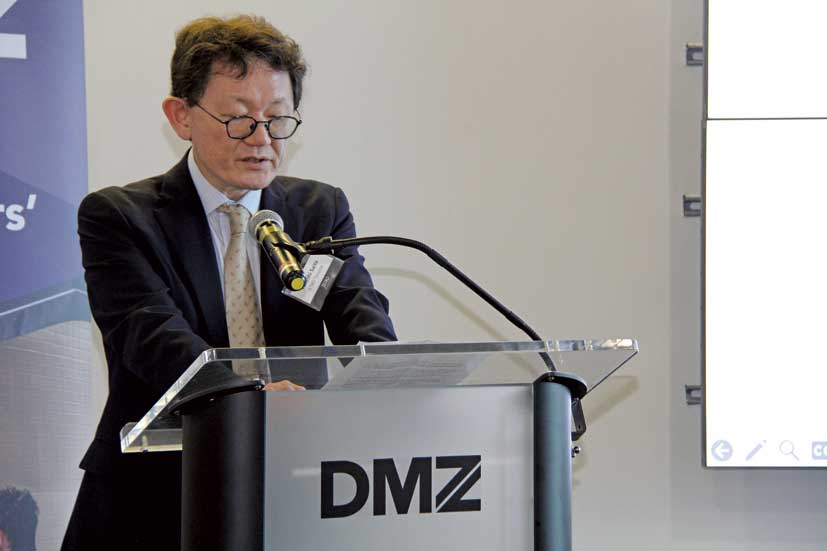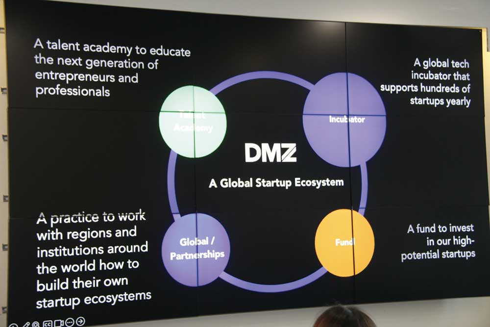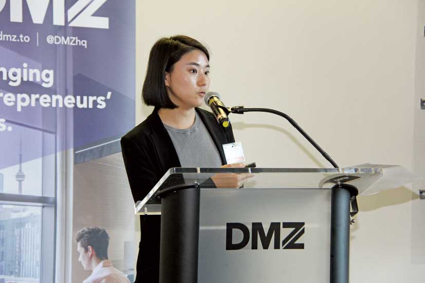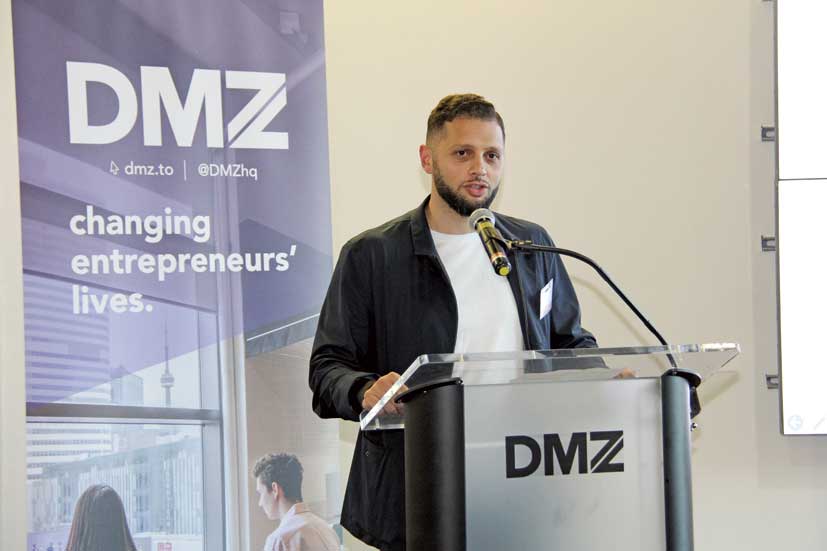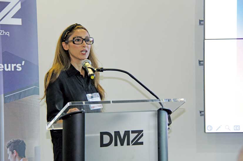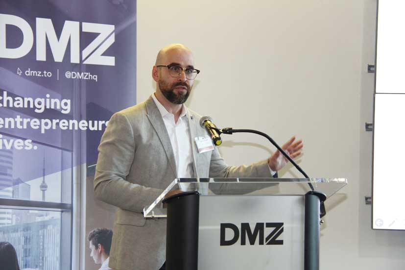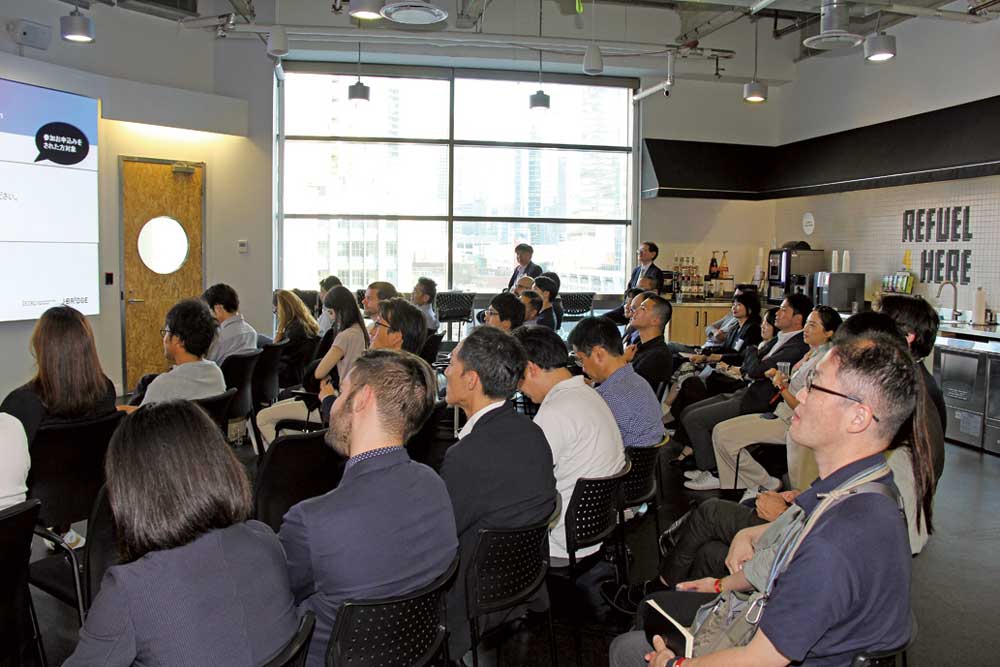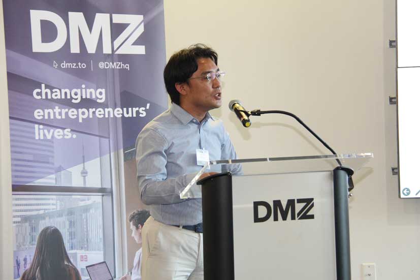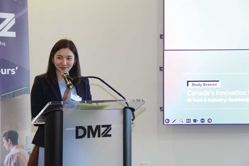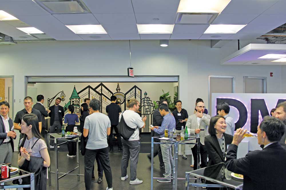 「Collision」前日には、カナダのスタートアップ企業への出資や協業、およびエコシステムプレーヤーとの連携を検討している日本企業のオープンイノベーション担当者などを対象に、DMZ内にて勉強会とネットワーキングが催された。ジェトロ・トロントの上地禅氏が「カナダのAI技術優位の源泉&その活用」と題したエコシステムの概要を説明、その後ウォータールー大学のCo-opプログラム担当者であるAaron DeFaria氏、DMZのビジネスストラテジーを務めるMichael McCarthy氏、人工知能・機械学習のプラットフォームを提供しているScale AIのMaryam Ajorloo氏の三人がゲストスピーカーとして登壇し、カナダのイノベーションエコシステムに関する理解を深めた。