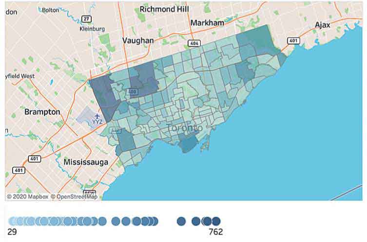 トロントの感染マップが公開中。TTCの混雑具合も明らかに