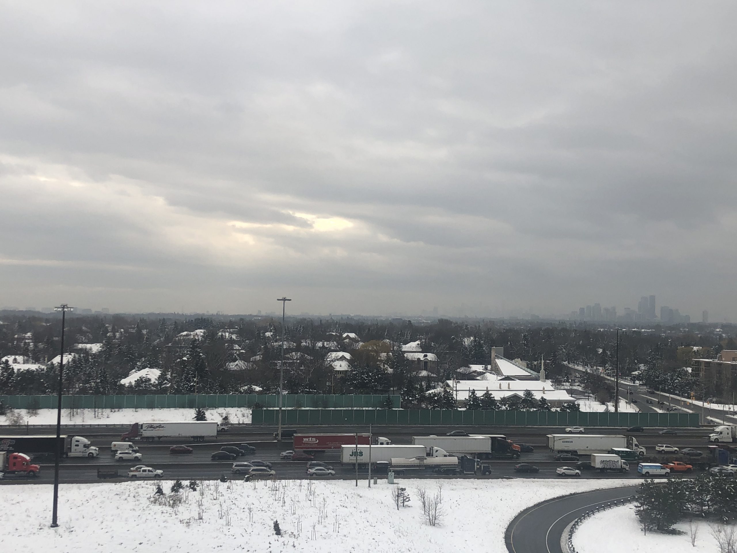 こちらの写真は、今日ロックダウン初日月曜日のお昼近く。いつも混雑をみせるハイウェイ401は変わらずに渋滞気味だ。