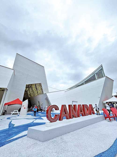 式典では、カナダを代表するミュージシャンのパフォーマンスや、先住民によるスピーチを拝聴。その後はカナダパビリオンへ。日本とカナダ、それぞれの文化や価値観が交差する空間でした。
