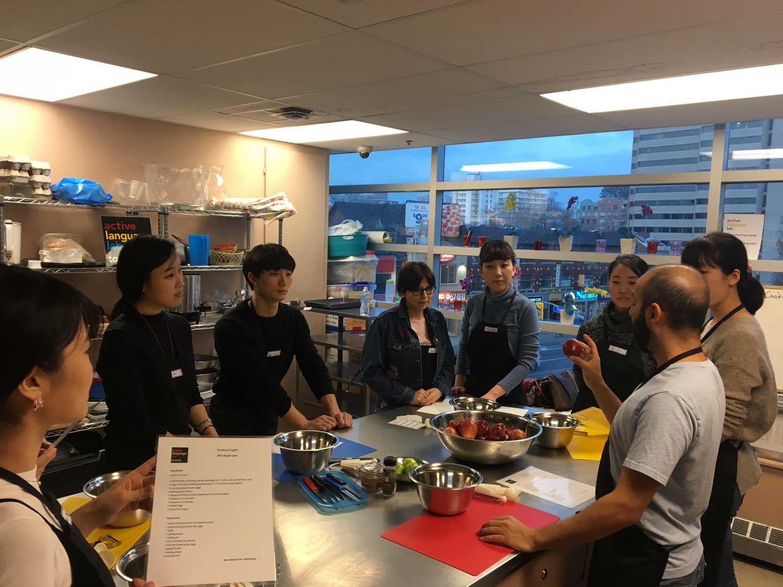 先生は英語教師ですので、留学生が間違えやすい前置詞などもしっかり教えてくれました。焼いている間も、使った材料や調理方法の英語を再度確認し、学習の時間となります♪先生はとっても愉快な方で、楽しい2時間でした!料理と英語が両方学べ、新しい友達を作ることができ、大満足です!