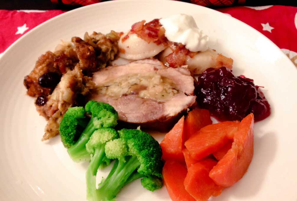 日本ではあまり七面鳥を見たことがなかったので、実際のものを見ると「これ、食べきれるの!?」と心配になってしまうくらい大きくてびっくりしました。七面鳥にはクランベリーソースを掛けることも知らなかったので、恐る恐る試したのですが、これも意外とおいしい!カナダのクリスマスディナーって意外とさっぱりおいしく頂けるんだなあという再発見ができたクリスマスでした。