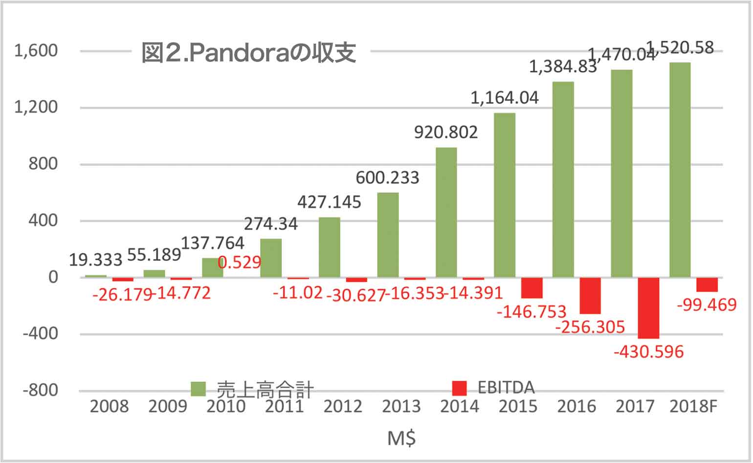 そして同時に、後半期に決定された「0.11セント/再生」の楽曲使用料がPandoraを苦しめます。こちらもSpotify同様、創業以来2010年を除いて黒字になったことのないサービスです。車社会の米国で流行しているPandoraが日本や海外に展開しないのもこの楽曲使用料の高さが関係しています。