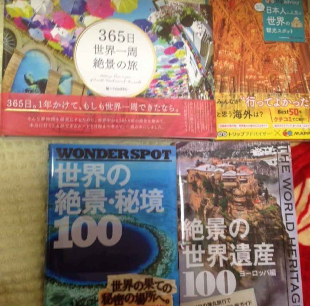 その後もなぜか「世界」への興味は尽きず、(喋れないくせに)洋楽・洋画など英語が絡むものや、世界の絶景にもはまる始末。世界の絶景本に至っては、小さい本屋さんの品揃えを軽く超すくらい自宅の本棚に一通り揃えました笑。上の写真はその一部です。