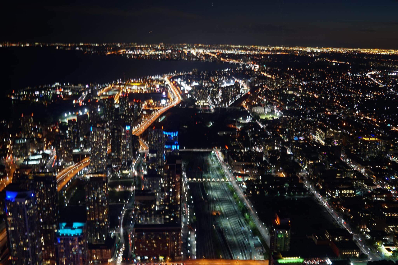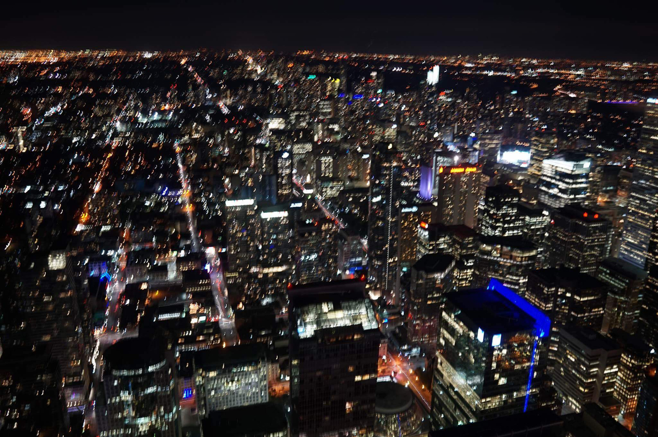 さて、みなさんはCNタワーに登ったことはありますか??CNタワーの前までは行ったことあるけど登ったことがないって人多いと思います。私もトロント生活5ヶ月目にして、やっとCNタワーに登ってきました。正直、CNタワーって見た目がしょぼい...(小声)東京タワーとかスカイツリーの方がいいなって思っていて、CNタワーの写真だけ撮って満足していたのですが、写真好きのクラスメイトが夕暮れのトロントが撮りたいと言うことで、行ってきました。CNタワ-に到着したのが午後8時くらいだったのですが、入場するまでに1時間半待つことになってしまい、結局夜景になってしまいました。夕暮れ時も見たかったのですが、夜景もとても綺麗だったので、来て良かったなと思いました。最初はそれほど期待してなかったので、余計に感動しました!