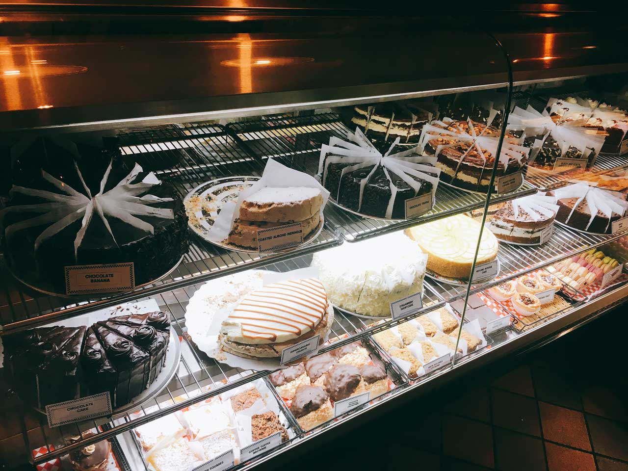 しかし、まだここで終わりません。目の端にうつる、ケーキのショーウィンドー。例えおなかが少しいっぱいだったとしても、目と鼻の先にある数種類ものケーキを前に食べないでいられるでしょうか!?