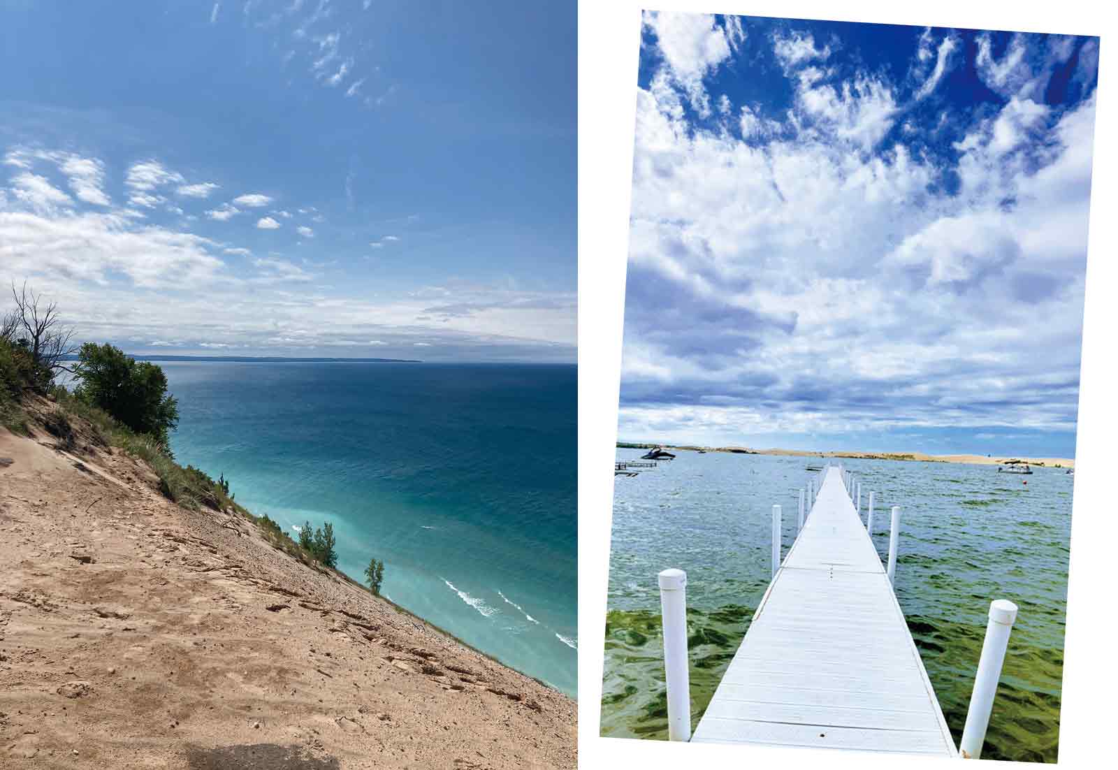 ミシガン湖とその湖面から切り立つSleeping Bear Duneの全景とショアラインが織り成す素敵な景色を堪能していると、あなたの右側広がる小さいSouth Bar Lakeを見ることができます。