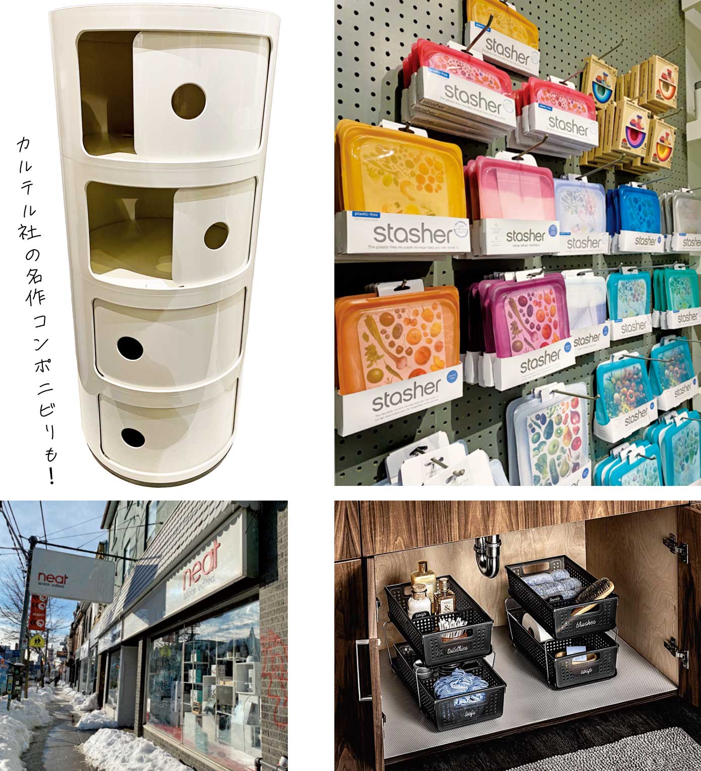 2004年にトロントで創業したNEATはトロント内に2店舗を構える、収納・家庭用品の専門ショップだ。デザインや機能面に定評のあるChile wishやJoseph Joseph、OXO、Yamazakiなど、14社の製品を豊富に取り揃えている。“これ!”という製品が見つかること間違いなし!全ての商品はオンラインショップでも購入可能。