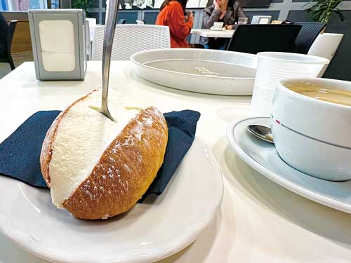 地図によれば国立図書館が近い。本を借りるわけでもなく、ただコーヒーが飲めて勉強ができる場所を探していただけなのだが。運よくカフェがあり、そこでローマの銘菓マリトッツォを注文。クリームが挟んである菓子パンで形は店によってまちまち。図書館のそれは巨大だった。ちょっと日本人の胃には強烈だったかも。
