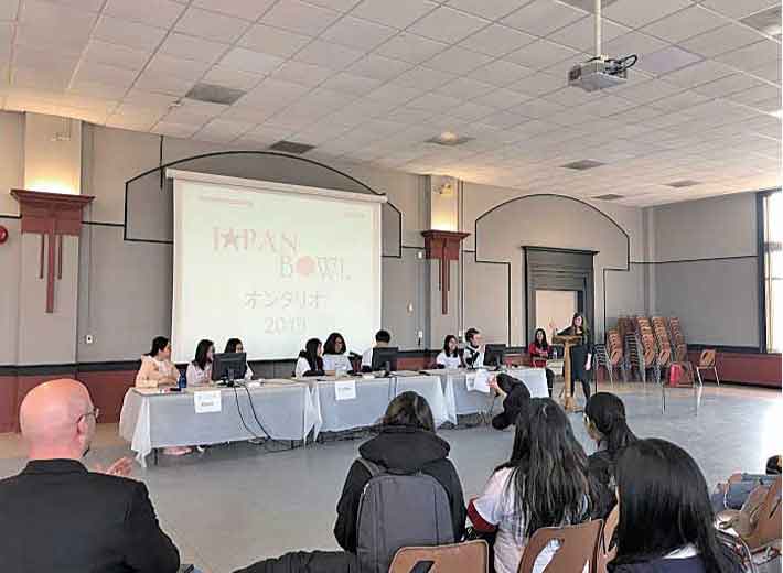 日加修好90周年記念の昨年2018年に第一回目が催され、今年で二回目となるこのイベントは、オンタリオ州内で、日本語・日本文化に興味を持つ高校生が互いの知識を競い、また交流できる場を提供し、大学でも日本語学習・日本研究を続け、日加相互理解を深められる人材の育成を目的としている。出題範囲は日本語、日本の文化、社会、日常生活、歴史、地理、そして時事問題と幅広く、試験ではなく、3人1組のチームで競うクイズ形式で行われている。