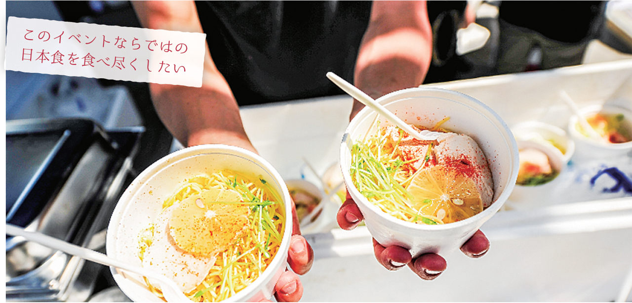 また、日本食以外のカナダ現地のレストランも出店し、日本食の要素を取り入れた特別メニューを販売予定となっている。そして成人以上の入場者向けには嬉しいアルコール提供エリアも設置。人気の高いビールや日本酒などで乾杯して、思いっきり食事を楽しみたい。