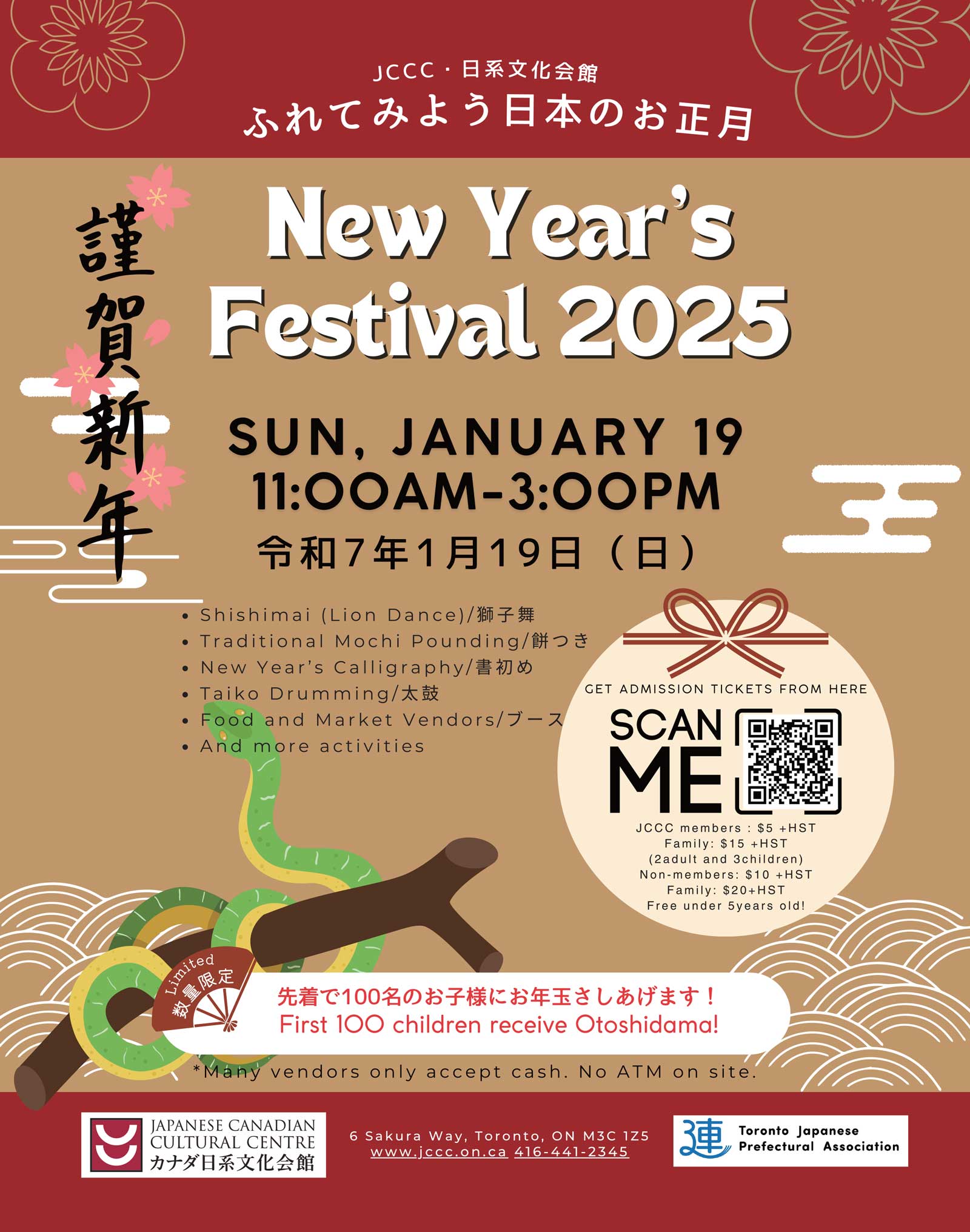 毎年恒例のお正月会が迫ってきています。お正月会2025はトロント都道府県人会・連合会と合同で、少しリニューアルされた形でお届けします。もちろん例年通り音楽、食事、そしてお祭りの楽しさも提供する予定です。 お見逃しなく!