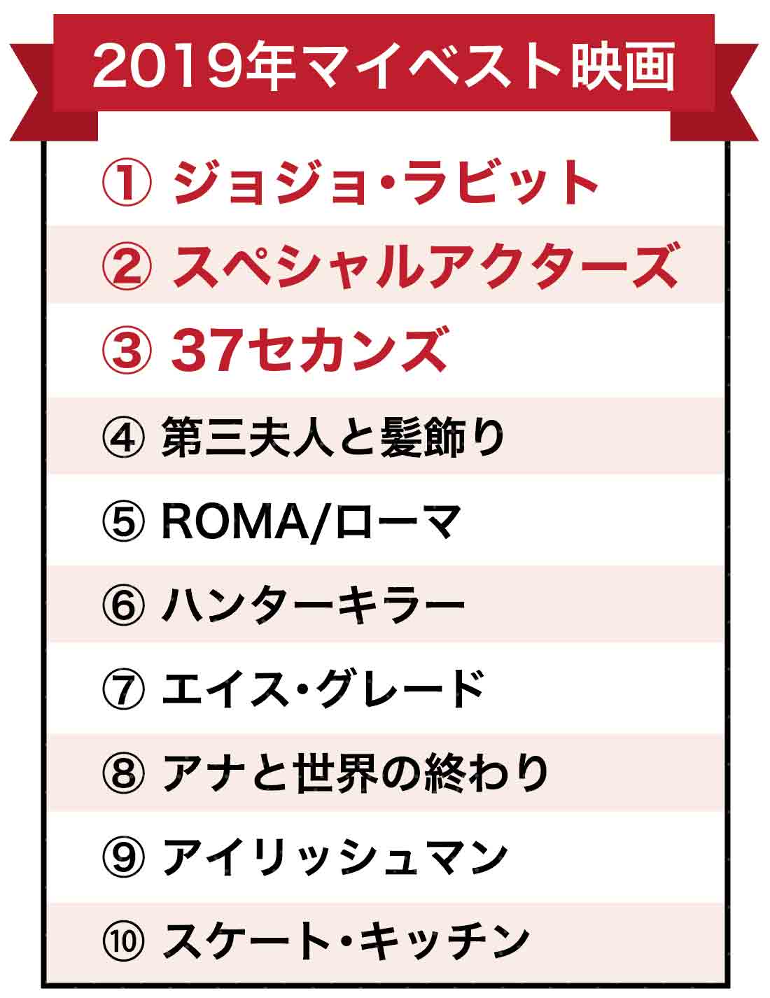昨年見た中で圧倒的に好きなのが、『ジョジョ・ラビット』と『スペシャルアクターズ』。面白いコメディながら、コメディにとどまらない世界へ着地する感動で、こんな映画を待っていた!という気分でした。『37セカンズ』『エイス・グレード/世界でいちばんクールな私へ』『アナと世界の終わり』『スケート・キッチン』は、青春映画好きの私はつい選んでしまうラインナップですが、その中で『37セカンズ』が群を抜いて好き。障害を持つ女性の成長物語を普遍性のある青春ロードムービーに昇華させているあたりに、『レインマン』に似た感動を覚えました。『第三夫人と髪飾り』と『ROMA/ローマ』には、圧倒的な美しさの中に漂う豊かな情感に魅了され、『アイリッシュマン』には、男たちの悲哀のつまった人生に魅了される。