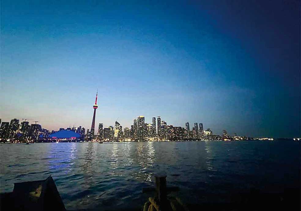 そしてその後のフェリーも素晴らしいです。私は今回、Hanlan’s Pointから帰りのフェリーに乗りました。出発すると、進行方向左側にとてもきれいなトロントの夜景がすぐに現れます。CNタワーにロジャースセンター、ビル、コンドミニアム、全ての光がロマンチックで美しかったです。オンタリオ湖の上から眺める夜景はまたいつもとは違って特別でした。自然と都会の両方を一気に楽しめるところがさすがトロントですね。また一つトロントの好きなポイントが増えました。まだ行ったことがない方、ぜひ訪れてみてはいかがでしょうか。(かほ)