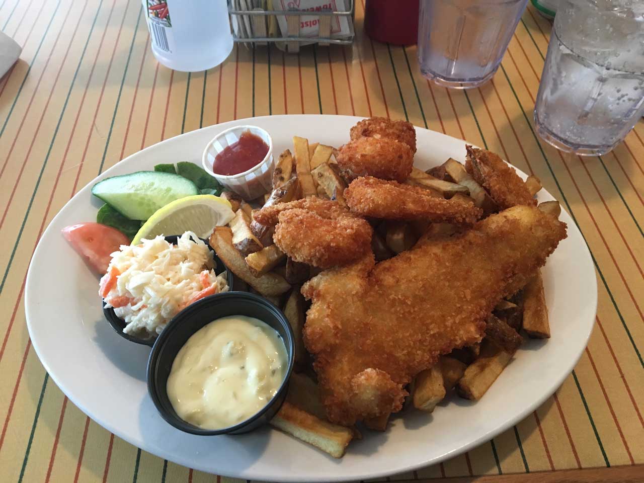 プリンスエドワード島の州都、シャーロットタウン周辺を散策。街の人々はとてもフレンドリーで、挨拶をしてくれます。海の周りを散策すると、とても気持ちが良い♪ピークスワーフという観光客向けの施設があるのですが、そこで皆アイスを食べたり、芝生で子供たちが遊んだりと、ほのぼのした時間を過ごすことができます。また、シーフード料理が有名で、地元の人に人気というWater Prince Corner Shopレストランへ行ってきました!ミックスフライを頼んだのですが、身が大きくプリプリで美味しい!皆さんも是非行ってみて下さい。シーフード以外にもメキシカンや中国料理もあります。しかし、どのお店も21時前には閉まってしまうので、要注意。
