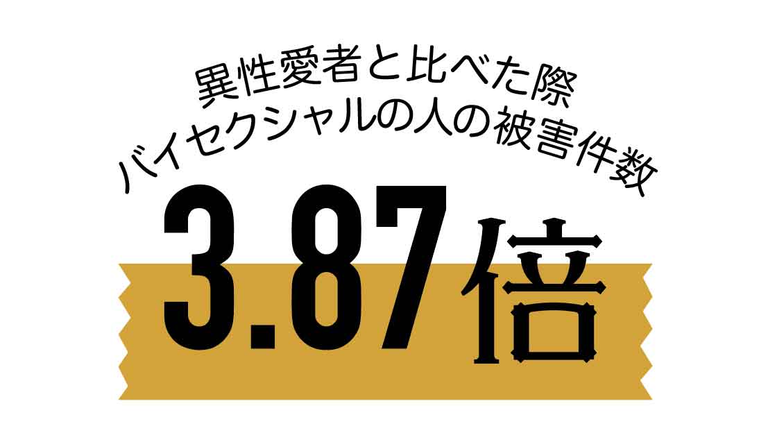 Statistics Canadaによる調査によると、暴行や窃盗による被害者は同性愛者やバイセクシャルの数が異性愛者の数を大きく上回るそうだ。異性愛者の場合、被害数は1000人あたり69件なのに対しバイセクシャルの場合、この数字は267件とその差は3.87倍。同性愛者の場合も1000人あたり142件と、異性愛者と大きな差がある。また、性的暴行においても異性愛者の中での被害件数が1000人あたり17件というのに対し、同性愛者の中での被害件数が1000人あたり151件と、こちらもおよそ9倍という大きな差が出ている。これはカナダにおける調査結果なので、世界的に共通することなのかは言えない。しかし、『LGBTQ+』において先進国と言われるカナダでさえ、このように明らかな性的指向による差別が起きているのだ。 statcan.gc.ca