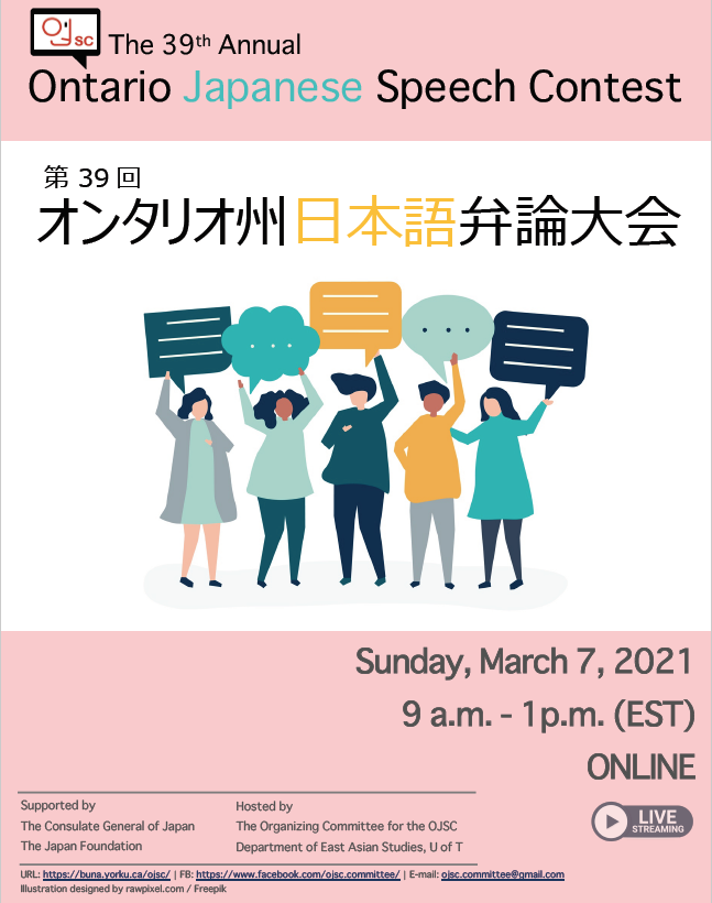 3月7日今週日曜日ストリーミング開催!オンタリオ州日本語弁論大会