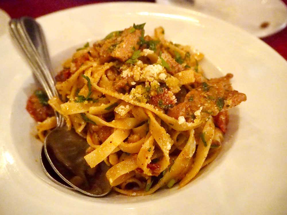 そしてパスタは GRILLED CHICKEN TAGLIATELLE($25)をいただきました。トマト系のソースに太い麺、そしてハーブ感がたまりません。一瞬で平らげてしまいました。