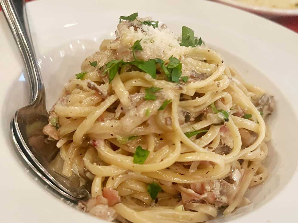 あまりにもおいしかったので、パスタを一皿追加することに。MUSHROOM LINGUINE($25)をいただきました。こちらはクリーム系。とても濃厚で、きのこの香りが鼻を抜けます。これまた絶品。