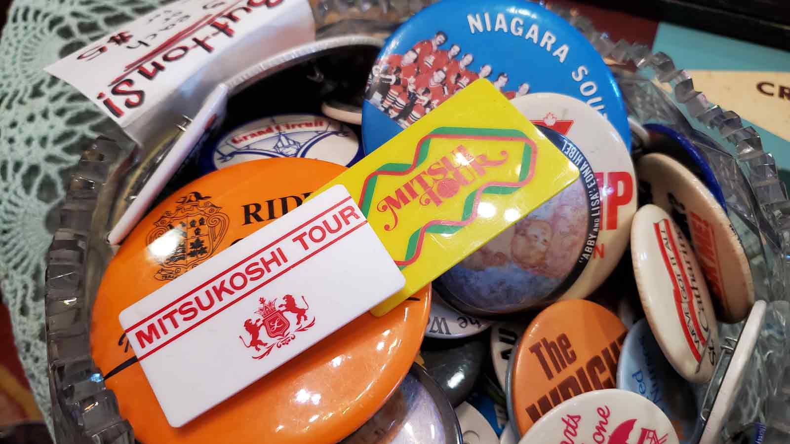 店内にはいくつか面白い日本のアイテムもありました。一つは子供服の山の中に見つけた法被(はっぴ)。そしてMitsukoshi TourとMitsui Tourと書かれたバッジ。昔の観光ツアーに使われていたものでしょうか。こんなところで日本のレトロなものに出会えるのもきっと何かの縁ですね。Ragdoll Vintageはオープンしてまだ1年。これからどんな品揃いを通じてトロントに根付いていくのか楽しみです。