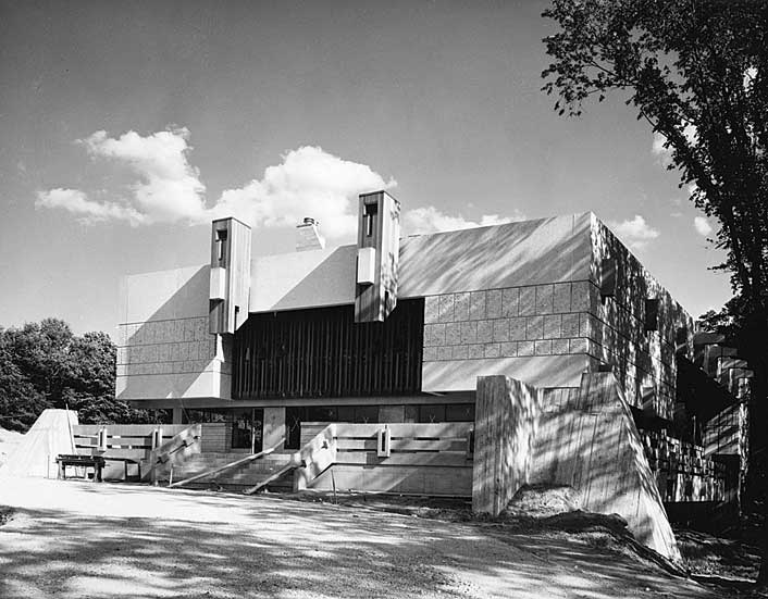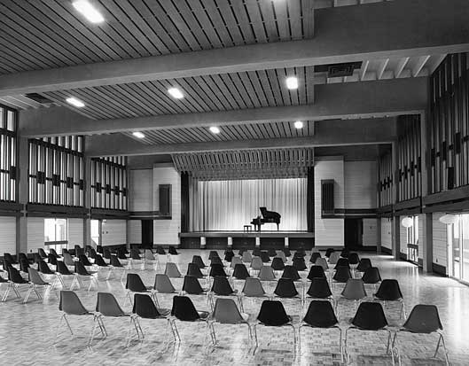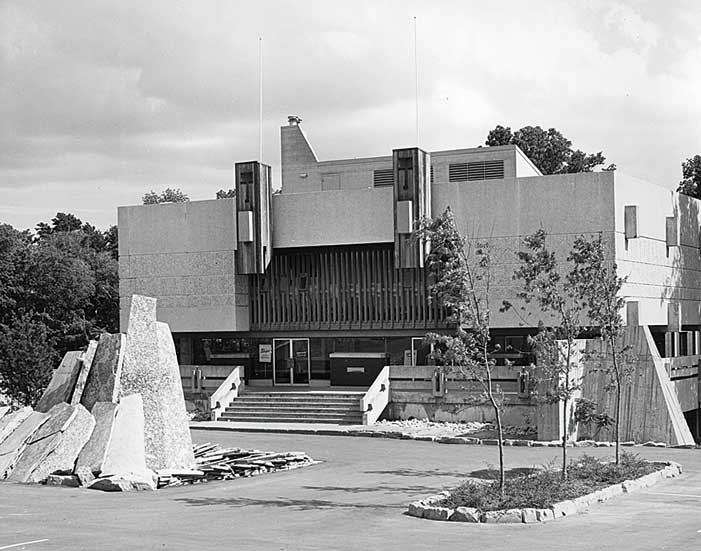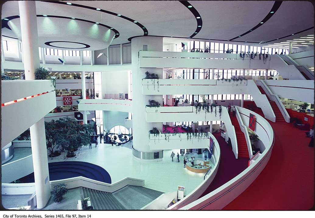 1950年代、「Thermos」や「Frigidaire」などが工場を構え産業が栄え始めたスカボロー。それまでやっと5万人ほどいた人口が10年以内に2倍になり、急激な成長を遂げた。しかし確かなるアイデンティティーを持たず人口だけ増えてしまった結果、コミュニティーをまとめるものがなかった。「スカボロー」と「シベリア」を組み合わせた当時のニックネーム「Scarberia」で都市部から遠く見離されていた様子がよく分かる。そんな時代にシビックセンター建設の依頼を受けたのがモリヤマ氏だった。1998年にトロントとの合併で市としての独立性をなくした今でもセンターは市役所のような役割を果たしている。