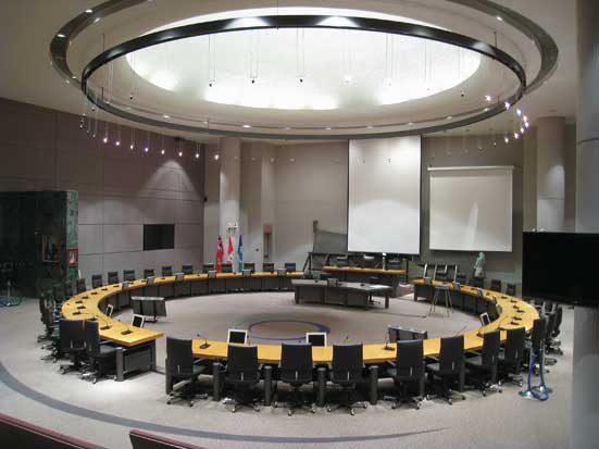 オタワの前市長ジム・ワトソン氏はこの市庁舎について、「ここは人のためにある場所。政治家はただ一時的にこの場所を借りているだけだ。ここで人たちが何を話し合い、どんな行動をするかが一番大事」と語っている。モリヤマ氏が夢見てきた民主主義な建築はオタワでも形になっている。