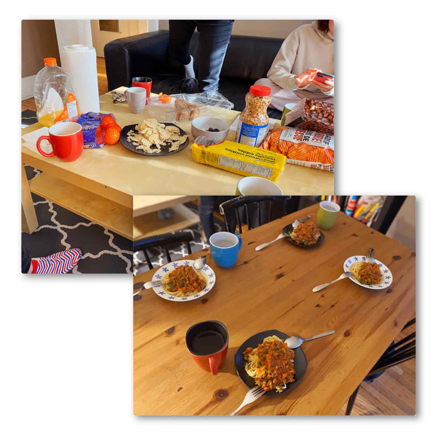 一人の方が全員分のパスタを作ってくれて、夕飯を一緒に食べたりと
