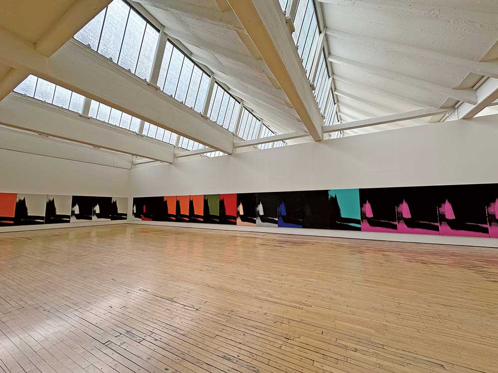 別のエリアでは、アンディ・ウォーホールの《Shadows》(1978–79)が展示されている。102枚のカラフルなキャンバスからなるこのシリーズは、映画や写真、絵画など多様な表現が融合した、ウォーホールの中でも特に抽象的な作品。