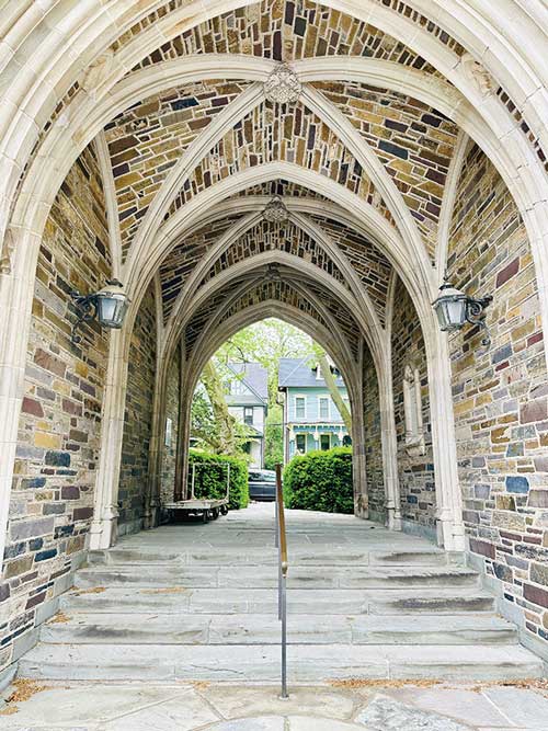 静かな並木道を抜けた先に広がるのは、プリンストン大学のキャンパス。まず足を運んだのが「Princeton University Chapel(プリンストン大学チャペル)」。ゴシック建築の壮麗な姿は、ただの宗教施設という枠を超え、大学の精神性そのものを象徴している。