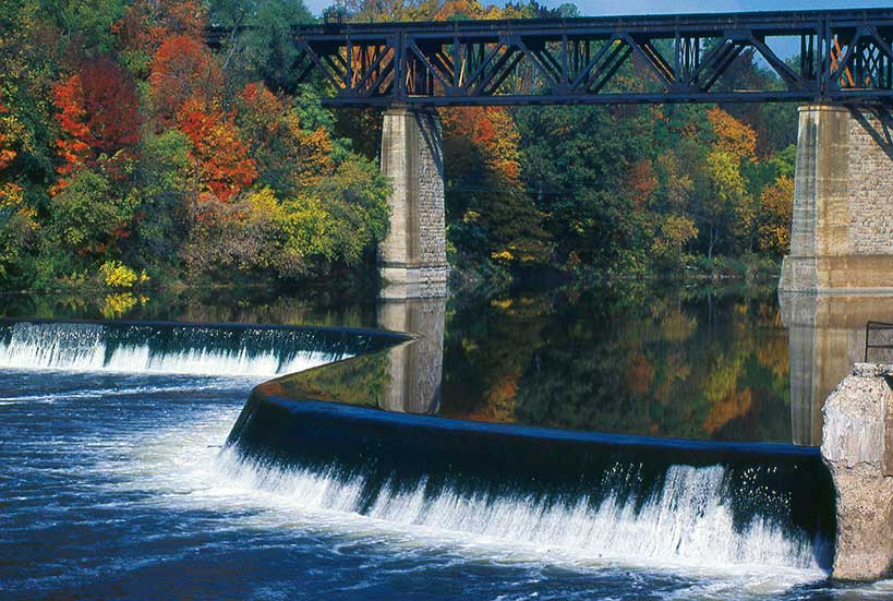 エトビコのハンバー川で鮭を見に行くならEtienne Brule Park近くにあるOld Mill Damがおすすめ。特に雨の後は増水するため、その川の流れは鮭の遡上を助けるそう(ただし記録的な大雨などは反対の効果がある)。
