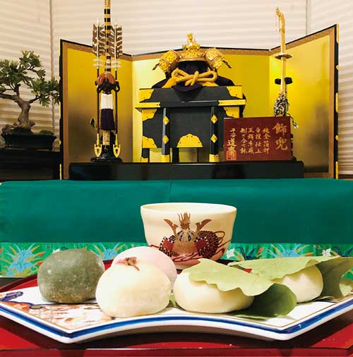 話は変わって、茶道の世界では、5月からお茶を沸かす炉が、夏用の「風炉」にかわる時期でもあります。毎年、立夏(5月上旬)から、立冬(11月上旬)の季節まで使われます。 11月の最初のお稽古が「炉開き」と呼ばれるのに対し、5月の最初のお稽古は、「初風炉(しょぶろ)」といいます。時期的にも5月5日の端午の節句、この時期にお茶席でいただくのを楽しみにしているのが、柏餅です。茶道をしていなくても、この時期皆さんがいただく和菓子ではないでしょうか。柏の葉は、新しい葉っぱが出るまで、古い葉が残ることから、家系が絶えず、子孫繁栄の象徴の縁起物として食べられてきたそうです。