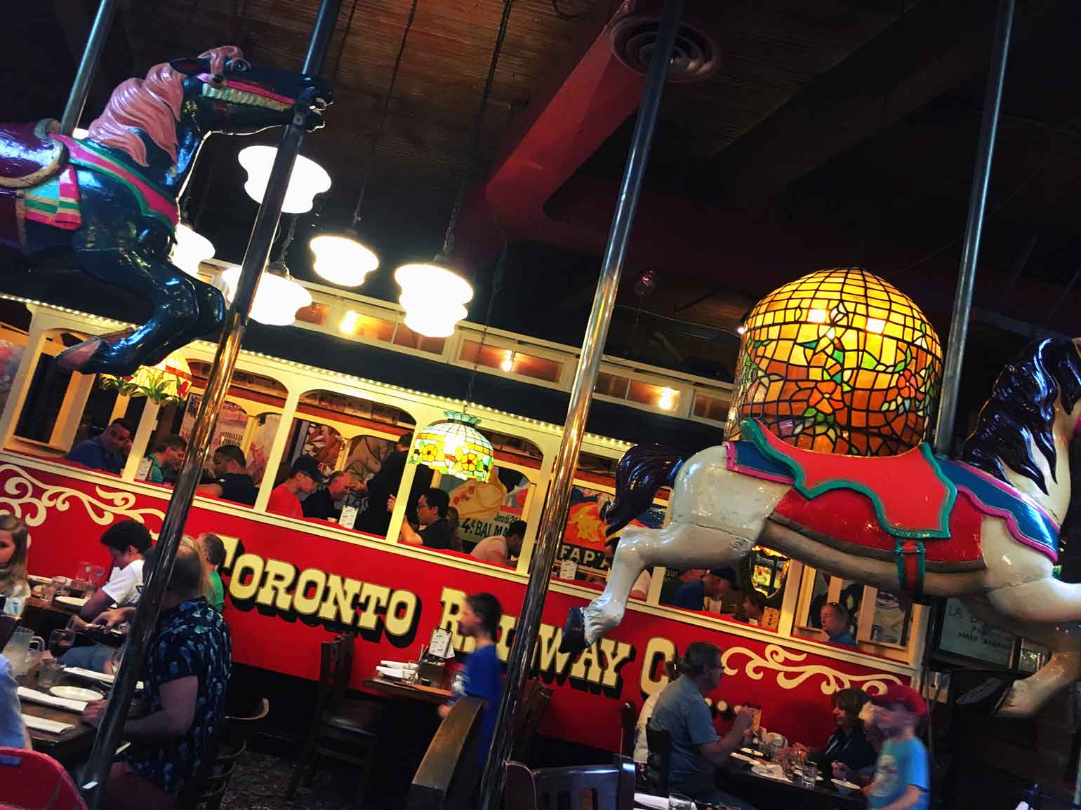 遊園地のようなかわいいお店です。私は、メリーゴーランドの中の席に案内してもらえました。