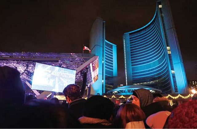 市庁舎のカウントダウンイベントの様子 - トロントで心霊スポットとして名高い洋館、The Keg Mansionで幽霊と一緒にステーキを食べる