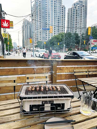 この夏も頻繁にトロントのパティオに入り浸っており、酷い(?)日は、1日3軒ハシゴすることも。最近のお気に入りは、Baldwin Stの台湾料理店「Charidise」。昨年までパティオの床が斜めで座り心地が悪かったのですが、今年は新しくウッドデッキが設置されていて快適に!もう一つのお気に入りはノースヨークの「Lee Yakiniku」。串を注文したら、おっちゃんが大きな炭火コンロを運んできてビックリ!まさかYonge Stの歩道で炭火BBQをすることになるとは…近すぎて暑い。次は猛暑ではない日に行きたいです。(MGDS)