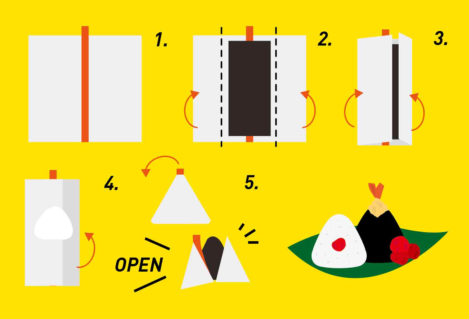 日本のコンビニにあるおにぎりは、いつ食べても海苔がパリパリ、手を汚すことなく楽しむことができる。そこで紹介したいのが、アルミホイルの真ん中にテープを貼り、上の部分はつまめるようにアルミホイルからはみ出させておく。その上に海苔を置き、海苔を左右から包む形でアルミホイルを折り、おにぎりを置く。あとは下からおにぎりを包み込むと、食べる時にはテープを引っ張りアルミホイルの包みをはがすだけでパリパリの海苔に包まれたおにぎりを楽しむことができる。