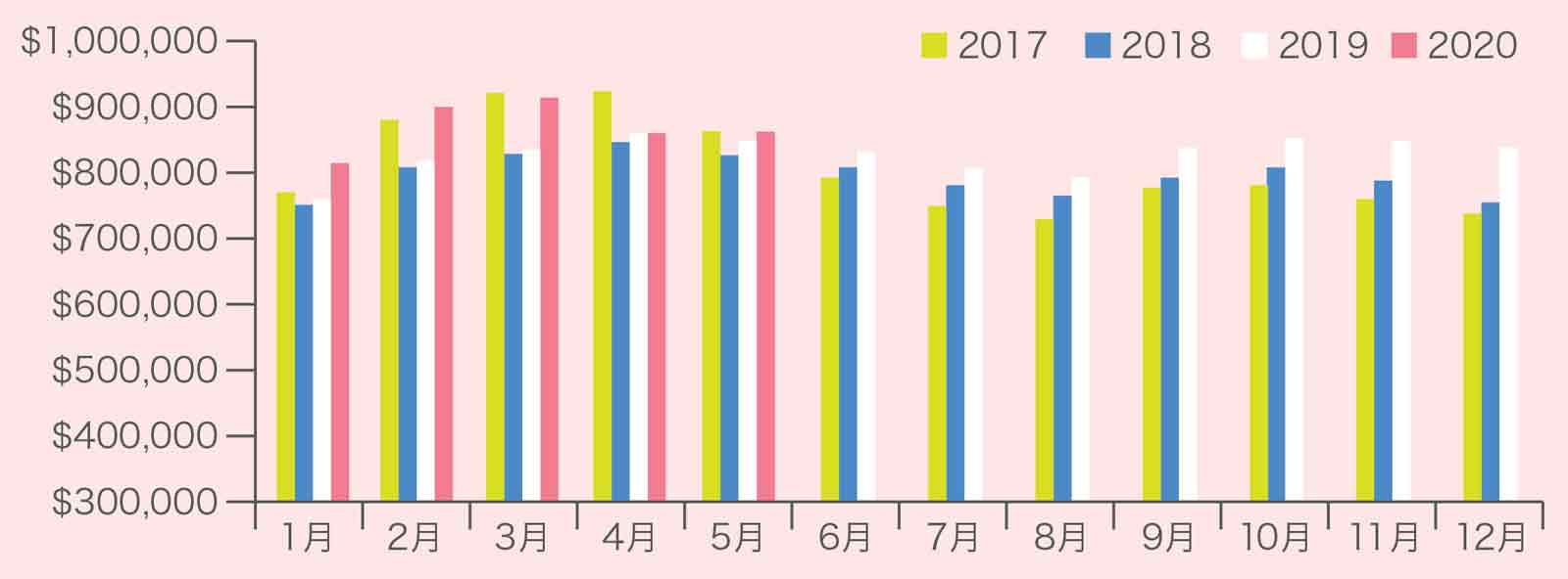 2020年5月のTREB全域の総取引数は4606件となり、2019年同月の9950 件からマイナス53.7%と大きく後退しました。新規リスティング数はマイナス53.1%、有効リスティング数はマイナス42.8%とどれも大幅に減少しています。急いで売りに出そうとする件数も少なく、価格的には穏やかに上昇といった感があり、ひところの高騰続きの頃に比べはるかにバランスの取れたマーケットになっていると言って良いでしょう。ただし物件タイプやエリア、価格帯などで違いがあるのは知っておく必要がありますね。