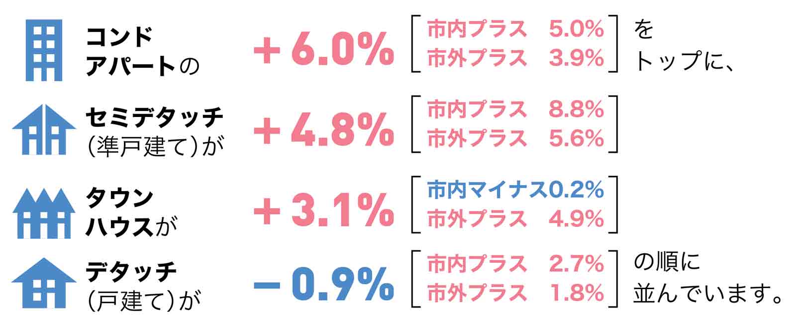 物件タイプ別に平均価格を見ますと、全体的には緩やかな上昇傾向と言ったところでしょうか。
