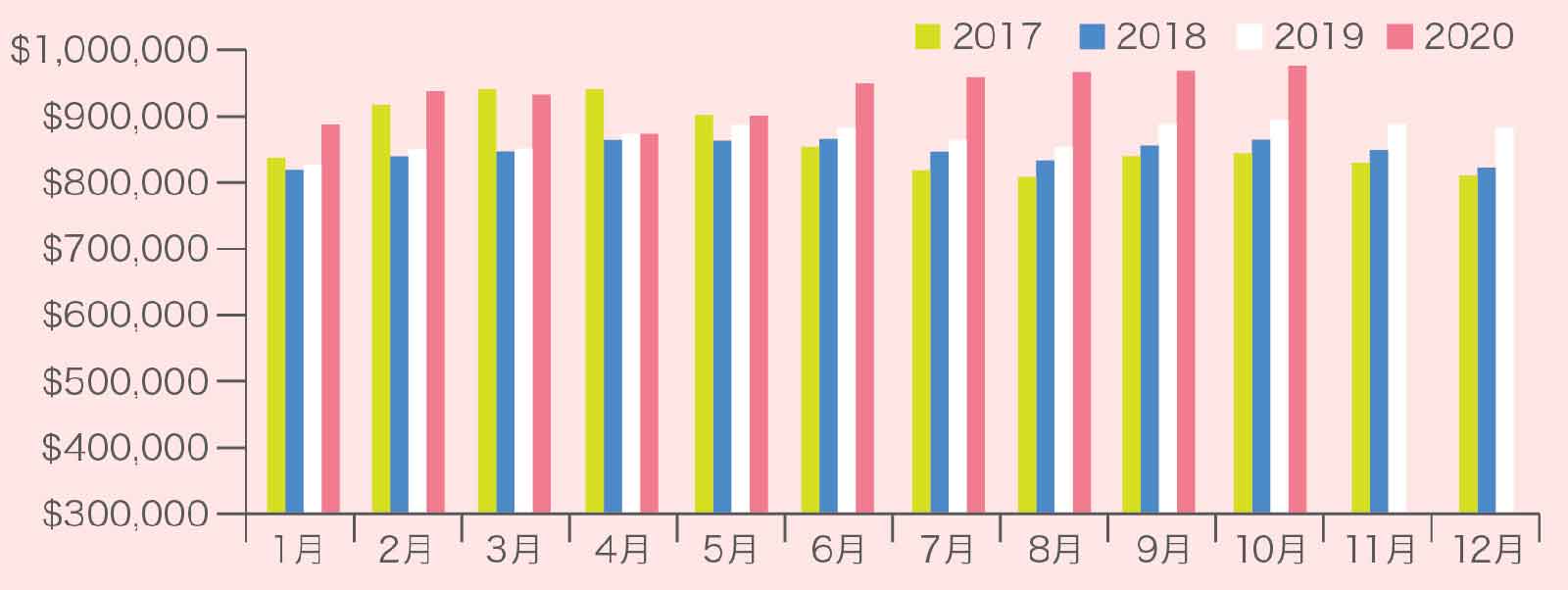 2020年10月のTREB全域の総取引数は1万563件となり、昨年同月の8445件からプラス25.1%の増加となりました。全体的なマーケットの勢いは継続しています。